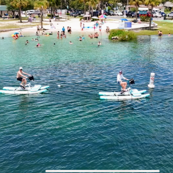 As long as you can reach the pedals, then you’re good to go! Riding a water bike is a great idea for a first date, birthdays, exercise, reunions, bachelorette parties, manatee viewing, bird watching, or just taking in the sights!
