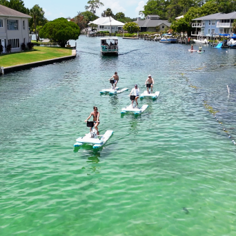 Our state of the art water bikes can hold up to 250 pounds and are extremely easy to pedal around the bay. They are popular for all age groups and abilities. The water bikes all come with a front basket to keep your phone and everything else perfectly dry. Book yours today as spots are limited!!!